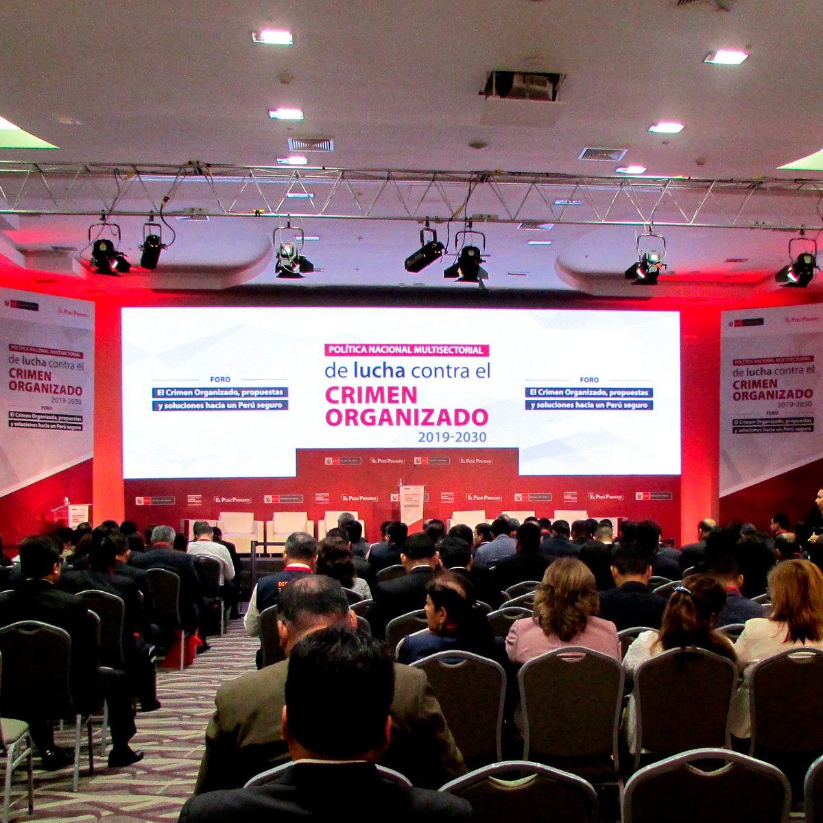 El evento sirvió para presentar la Política Nacional Multisectorial de Lucha Contra el Crimen Organizado 2019-2030, recientemente aprobada en julio de este año (Decreto Supremo N. 017-2019-IN), la misma que fue elaborada por una comisión multisectorial donde participaron veintiún dependencias del Poder Ejecutivo, Ministerio Público y Poder Judicial.